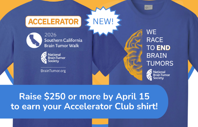 Our NBTS Accelerator Club will recognize event participants like you driving brain tumor breakthroughs forward through your fundraising efforts. The more you raise, the more additional prizes you can earn. By raising $250 or more on your personal fundraising page by event day, you will become part of the NBTS Accelerator Club.