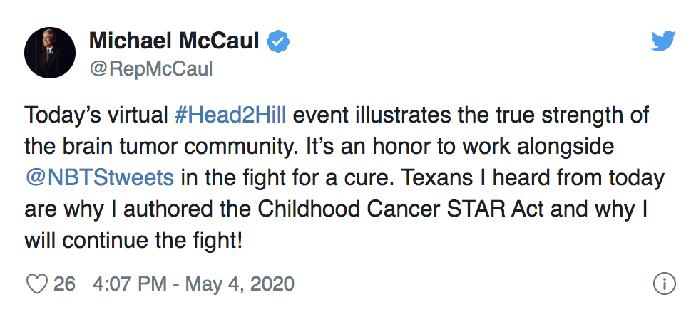 National Brain Tumor Society’s Head to the Hill is the brain tumor community’s signature annual advocacy event. Normally, we unite with hundreds of volunteer brain tumor advocates — consisting of patients, survivors, caregivers, family, friends, clinicians, and researchers — in our nation’s capital and take to the halls of Congress on Capitol Hill. But ensuring the health and safety of our community and participants during the COVID-19 pandemic meant we had to turn this year’s event — held on Monday, May 4 — into the first-ever all-virtual Head to the Hill.