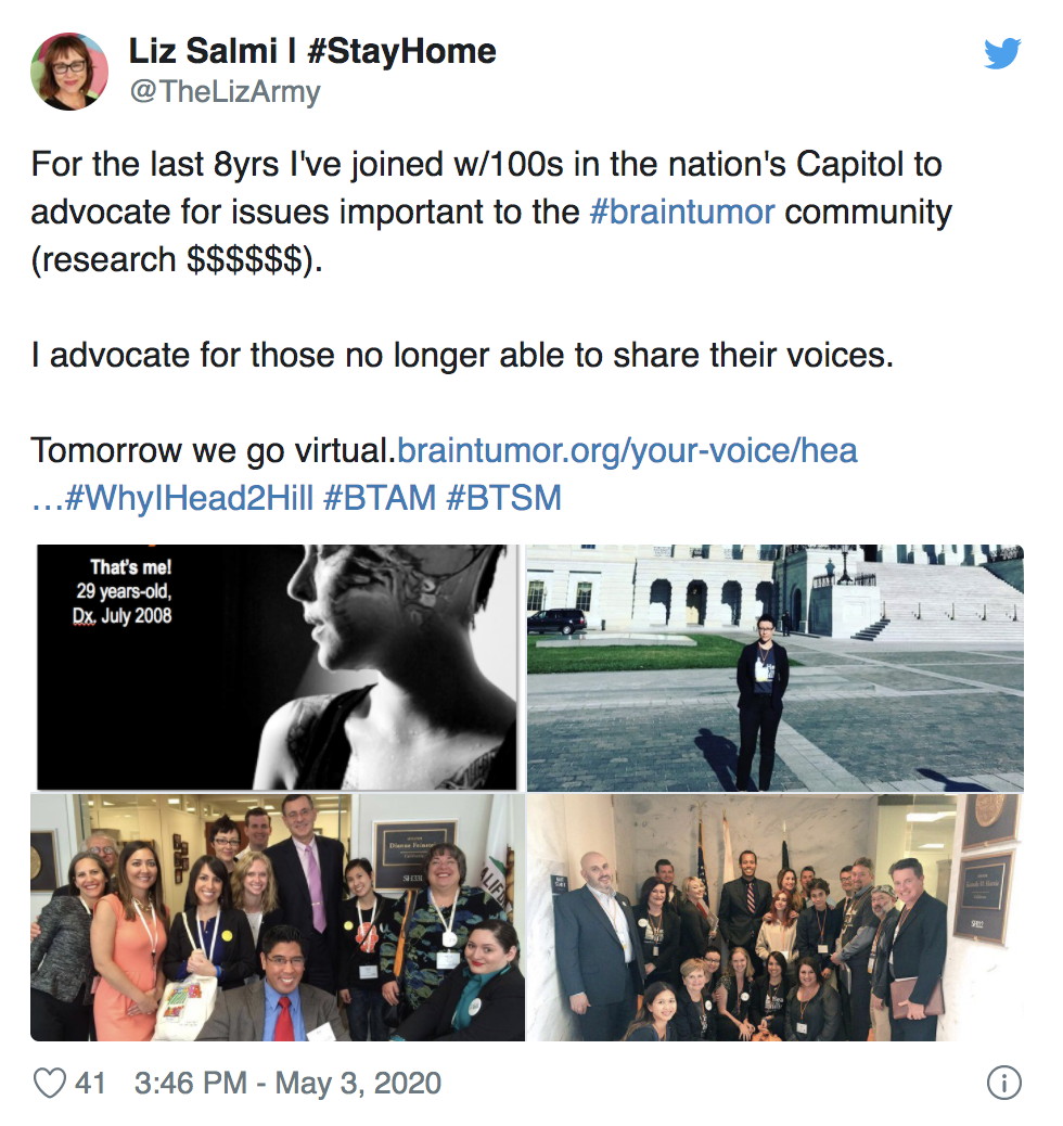 National Brain Tumor Society’s Head to the Hill is the brain tumor community’s signature annual advocacy event. Normally, we unite with hundreds of volunteer brain tumor advocates — consisting of patients, survivors, caregivers, family, friends, clinicians, and researchers — in our nation’s capital and take to the halls of Congress on Capitol Hill. But ensuring the health and safety of our community and participants during the COVID-19 pandemic meant we had to turn this year’s event — held on Monday, May 4 — into the first-ever all-virtual Head to the Hill.