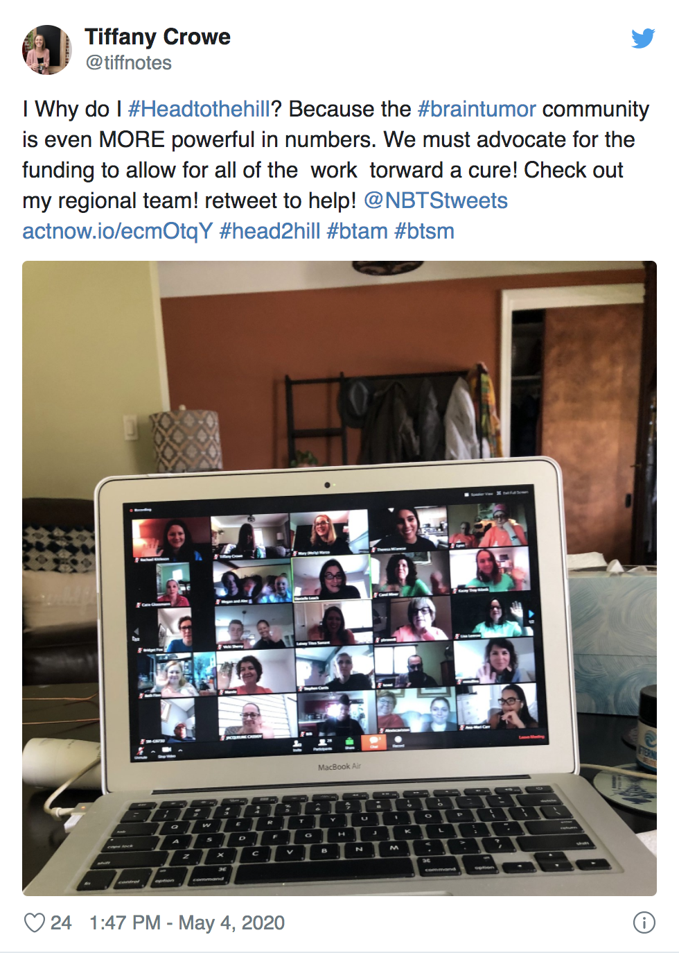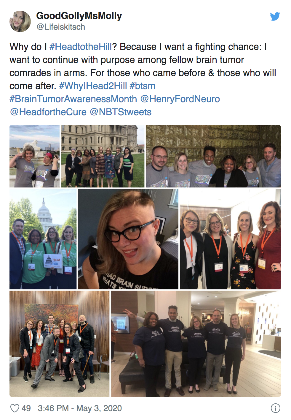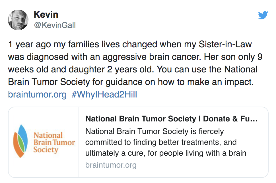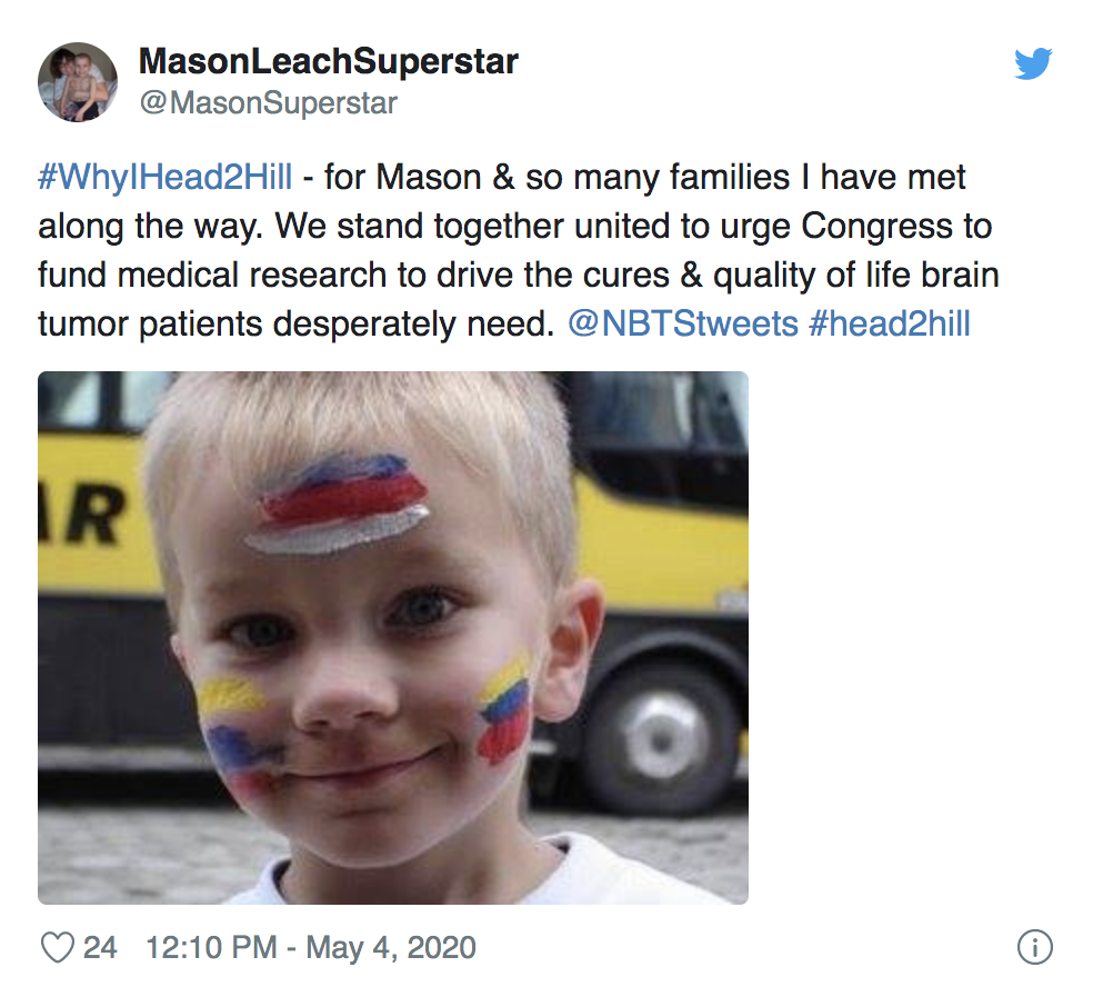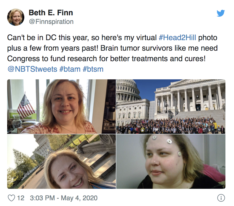 National Brain Tumor Society’s Head to the Hill is the brain tumor community’s signature annual advocacy event. Normally, we unite with hundreds of volunteer brain tumor advocates — consisting of patients, survivors, caregivers, family, friends, clinicians, and researchers — in our nation’s capital and take to the halls of Congress on Capitol Hill. But ensuring the health and safety of our community and participants during the COVID-19 pandemic meant we had to turn this year’s event — held on Monday, May 4 — into the first-ever all-virtual Head to the Hill.