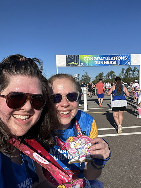 And then another teammate found me in the corral. It was her first half marathon. She was younger. I was older. We both had stories. And we ran together… the first four miles. We weaved through individuals, stopped for photos together, and took in every moment. She ran for her brother. I ran for me and them.